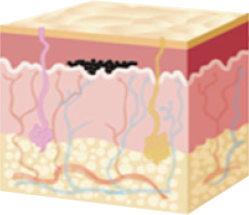 Fine scabs form in the stratum corneum. As they fall off they reduce pigment diseases and pores while enhancing elasticity.